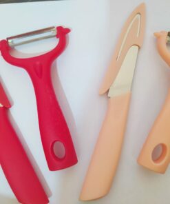 Para descascar e cortar batatas, cenouras, pepinos, legumes e frutas em geral, com muita facilidade e agilidade, suas lâminas em cerâmica são mais higiênicas, não perdem o fio facilmente e nunca enferrujam, oferecendo maior durabilidade, possuem cabos anatômicos e muito confortáveis, fáceis de limpar e com designer elegante.